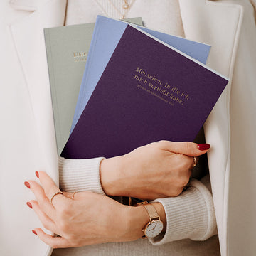 Du hast Erinnerungen, Gedanken und Gelüste, die du noch nie jemandem erzählt hast? Oder warst schon mal verknallt in Menschen, bei denen du dich heute fragst, wie das nur passieren konnte? Und vielleicht sind dir in einem Streit die cleversten Dinge erst hinterher eingefallen? Dann solltest du schnell zu meinen Notizbüchern greifen und dir und deinen Liebsten das ultimative Erinnerungsgeschenk machen. Denn du weißt ja: Erst im Rückspiegel sieht man, wie weit man schon gekommen ist. Ganz viel Spaß mit meinen außergewöhnlichen Notebooks!
